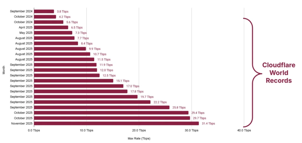 Atak, który osiągnął 31,4 Tbps, został automatycznie wykryty i zmitygowany przez systemy Cloudflare, które stale monitorują ruch na dużą skalę i stosują mechanizmy automatycznego filtrowania ataków. Eksperci zauważają, że incydent był częścią szerszej serii hiperwolumetrycznych DDoS, które pojawiały się coraz częściej w czwartym kwartale 2025 r. – i nie był jedynym rekordowym uderzeniem. Botnet był wcześniej związany z kampanią o kryptonimie „The Night Before Christmas”, podczas której ataki osiągały wartości dochodzące do 24 Tbps i 205 mln żądań na sekundę (Mrps) oraz średnie oferty ruchu w wysokości kilku Tbps.